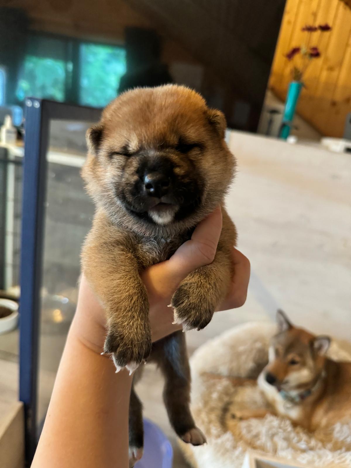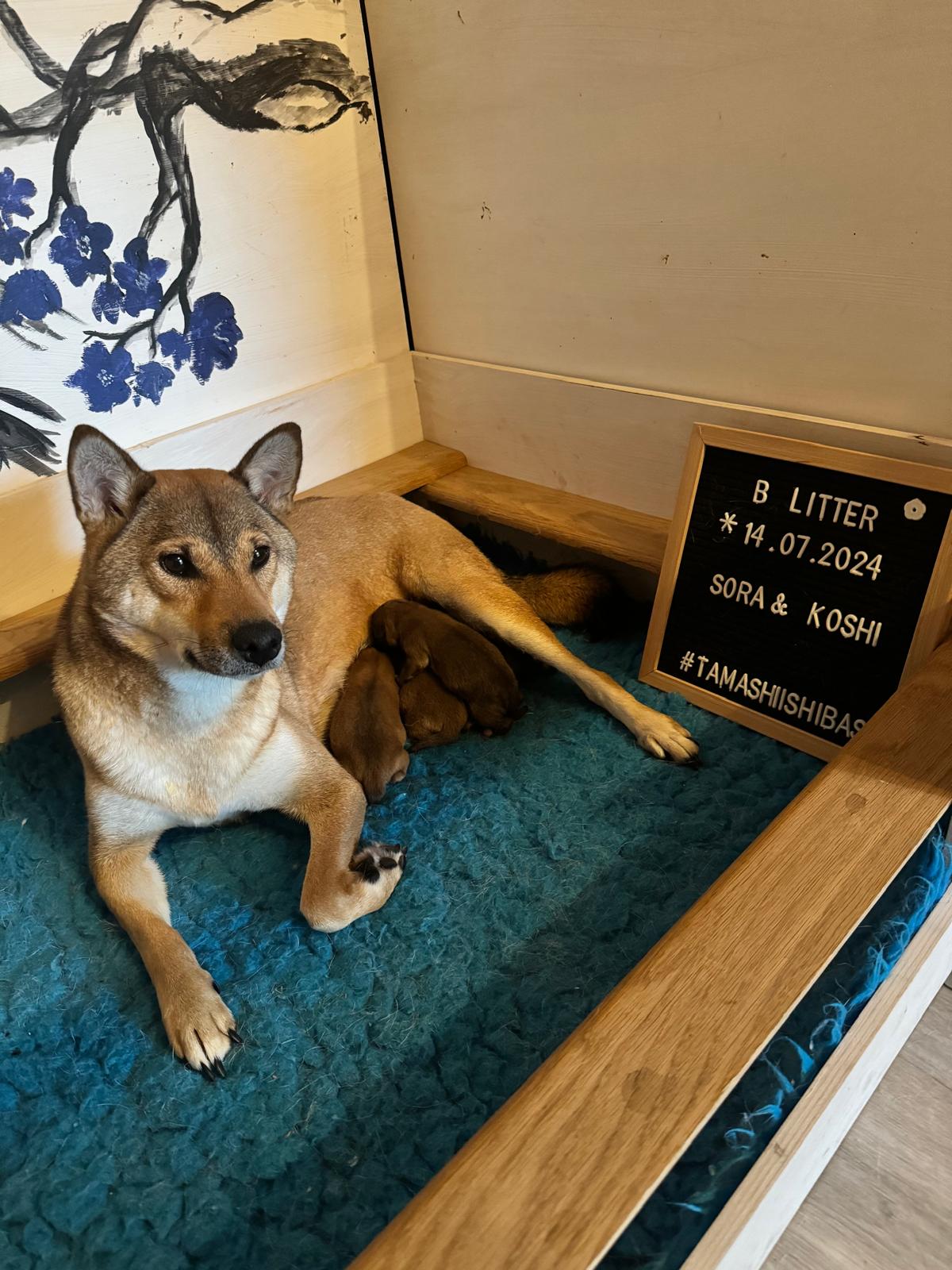 14.07.2024 Die Geburt verlief komplikationslos und sehr schnell. Sora brachte ab 18:40 Uhr innerhalb von 70 Minuten 4 gesunde rote Welpen zur Welt. (Kaito, Fuji, Suki, Saki)