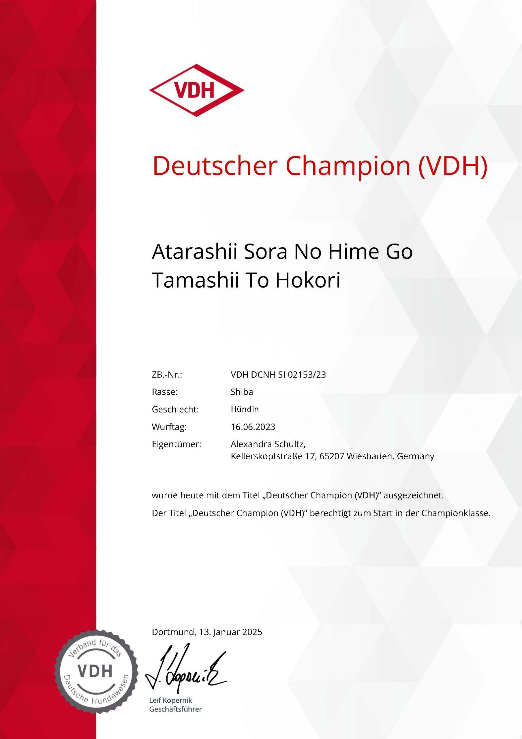Wir platzen noch vor Stolz. Hime als unsere erste eigens gezüchtete Hündin, die wir behalten haben… sie macht uns jeden Tag so fröhlich mit ihrer Art und ihrem unverwechselbaren Charakter. Mein kleines Himchen, manchmal eine kleine Diva, benimmt sich auch seit ihrer ersten Show, als würde sie das alles schon jahrelang machen. Mit 15 Wochen stand in ihrem ersten Bericht „Benimmt sich wie ein Showprofi“ und jetzt mit gerade einmal 18 Monaten hat Hime neben ihren zahlreichen Baby, Puppy & Jugendchampion auch schon ganze 3 Championtitel für erwachsene Hunde. Und dann auch noch so schnell den in Deutschland für den 5 Anwartschaften nötig sind und auch für den Schweizer Champion fehlt ihr nur noch 1 CAC. Ich bin einfach unfassbar stolz. Ich hoffe wir können an diesen Erfolgen anknüpfen. Aber egal was sie Zukunft bringt, bin ich mir sicher, unser Himchen wird uns auch weiterhin einfach verzaubern.