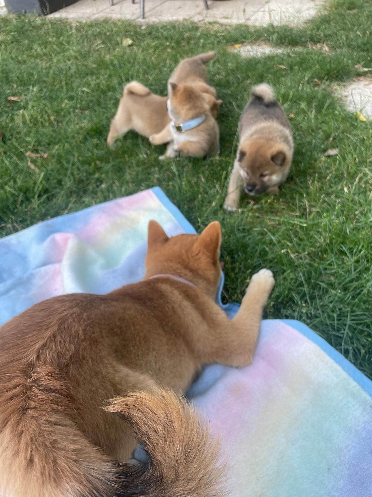 Welpen allein sind schon niedlich, aber wenn man dann noch 2 eigentlich fremde Würfe zusammenpackt und die sich einfach grandios verstehen, kann man von einem tollen Familientreffen sprechen. Die kleine Hana ist knapp über 14 Wochen alt und die letzte Verbleibende aus dem Wurf von Yuki x Kaito bei Kathrin (Minegami Sou). Sie zieht nächste Woche zu ihrer Familie nach Schweden. Kurzerhand hat Sora die kleine Hana aufgenommen und die Chubbies haben sich riesig über die neue lustige Spielgefährtin gefreut. 10 Wochen Differenz und einfach pure Harmonie. Davon kann jeder Züchter nur träumen. Wir sind unheimlich stolz auf unsere Welpen und Sora ist wirklich einfach nur zauberhaft und würde vermutlich alle Welpen adoptieren, die in ihre Nähe kommen 😉